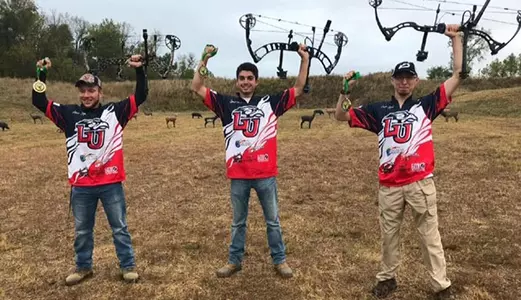 A trio of men's bowhunters from Liberty University's archery team, started in 2008, claimed the Flames' first national team title in five years at Sunday's United States Collegiate Archery (USCA) 3D National Championships at the Norfolk Archery Club outdoor range in Carrier Mills, Ill.