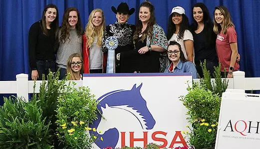 Junior equestrian rider Erin Mays, Liberty University's first Western team member to qualify for the Intercollegiate Horse Show Association (IHSA) National Championships, rode to a 10th-place finish on Sunday afternoon at the Pennsylvania Farm Show Complex in Harrisburg, Pa.