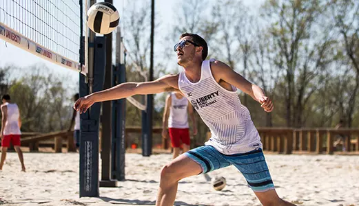 The four beach courts at the Liberty Mountain Intramural Complex and the four on East Campus will be evenly split between men's and women's pool play competition for the one-day tournament, before hosting the Gold and Silver playoff brackets, respectively, in the afternoon.