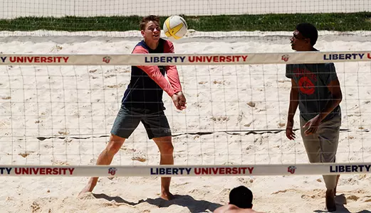 The third-year beach tandem of Gene Dejesus and Kaden Knepper overcame fellow Liberty University men's volleyball senior teammates Zach Martyn and Joel Slaughter in the Gold Bracket championship match at Saturday's NCSVA Mid-Atlantic Regional tournament hosted by Liberty for the second straight spring on East Campus and at the Liberty Mountain Intramural Complex.