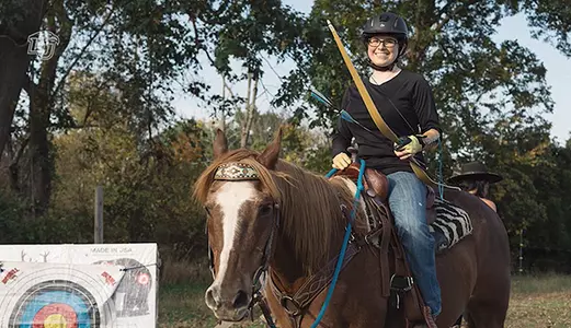 Most recently, she has picked up mounted archery, a unique blend of equestrian riding and shooting.