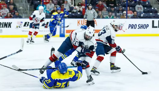 “I thought we had a good start, and had some good jump, led by the guys on the line of Devin Melice and Zak and Nate Albers, who had a solid game for us tonight,” Flames Head Coach Kirk Handy said. “What ended up hurting us was the turnovers that we had and not getting pucks in deep. We turned the puck over in the neutral zone, and they transitioned back on us and scored a couple times. Playing good teams, when you turn the puck over, it’s going to end up in the back of your net. That is something we need to learn from.”
