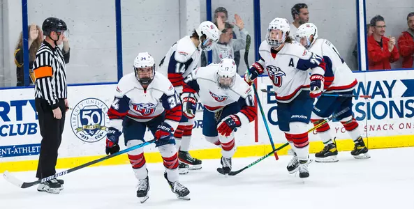 Liberty went back on the power play with 14:30 remaining in regulation and scored 50 seconds later when Lauber sent a pass across the high slot to freshman forward Jacob Kalandyk who fired a shot down the slot through traffic that beat Karlenzig to the top-left corner.