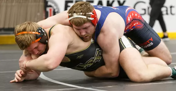 Flames junior Josiah Murphy, who normally wrestles at 197, won the heavyweight bracket by medical forfeit after scoring three narrow decisions in his first three matches — sandwiching 3-2 wins around a 5-3 triumph with a takedown in overtime. Senior captain Jeffrey Allen placed third with a 6-1 decision over Wisconsin Eau Claire's Mason Hawkins in the consolation bout.
