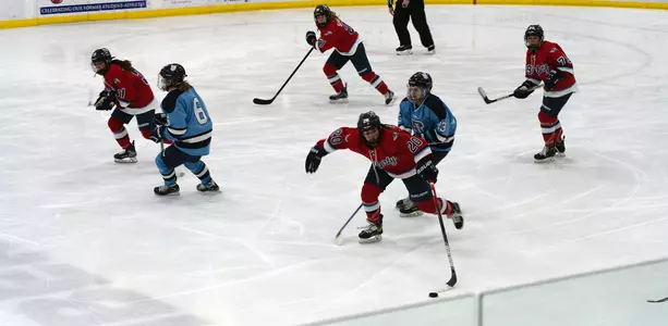 With the area under a winter storm watch overnight, Liberty University’s top-ranked, three-time defending ACHA DI national championship women’s hockey team again buried Rhode Island with a blizzard of goals in Saturday afternoon’s 10-0 triumph over Rhode Island at the LaHaye Ice Center.