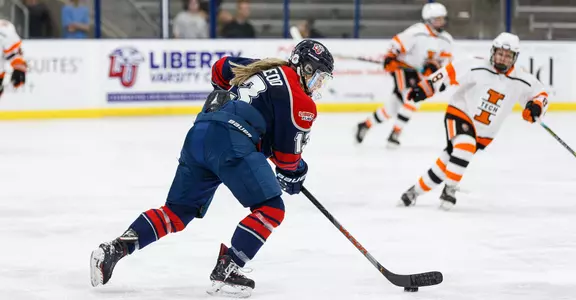 Graduate defenseman and alternate captain Dana McLeod, the reigning ACHA Division I Player of the Year, assisted Liberty’s first two goals and score its third, with two of them coming on the power play, to spark the Lady Flames’ attack.