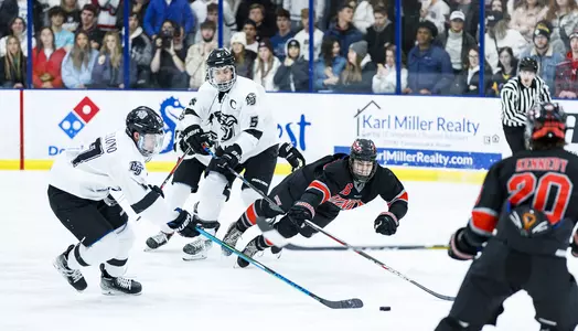 No. 4-ranked UNLV turned the tables on Liberty University’s No. 3-ranked ACHA Division I men’s hockey team in Saturday’s “Midnight Mayhem” rematch, overcoming a 1-0 first-period deficit for a 3-1 upset win in front of a capacity “white out” crowd at the LaHaye Ice Center.