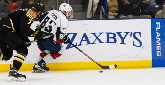 “They came on strong in the third and really got us on our heels,” Handy said. “We called timeout and we pulled Hunter (Virostek) with 43 seconds left and (Associate Head) Coach Jeff (Boettger) puts the guys he wants out there,” with the Flames on a 6-on-5 advantage.