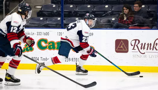 Desmarais broke the scoring ice in Sunday's rematch, finishing feeds from senior right wing Kenny Fogarty and Ross at the 6:31 mark. Tennessee tied it at 1-1 with 11 seconds left in the first period before freshman forward William Kapic put the Flames back on top, 2-1, assisted by sophomore center Ethan Dunn and sophomore defenseman Jeb Boring. After the Volunteers' Connor Frazer tied it at 2-2 with an unassisted shorthanded goal, Dunn scored the game-winner on a power play with 40 seconds remaining in the second period, assisted by senior center Christian Kline and Ross.