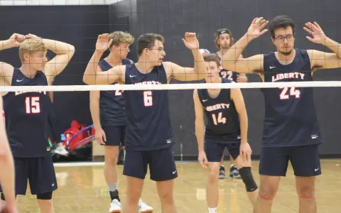 Liberty University’s men’s volleyball team concluded fall semester competition Saturday as it welcomed fellow East Coast Volleyball Association (ECVA) programs to the LaHaye Multipurpose Center for a final tournament, the Liberty Open, before the regular season begins in late January.