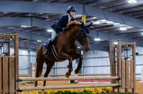 The seven college and university programs represented competed with a total of 80 rides in the various divisions from a field of 60-plus riders. Liberty totaled 29 points, landing one first-place finish from sophomore Hannah Summerlin in Pre-Novice and four runner-up showings from juniors Maggie Saunders (Open Flat) and Rebekah Honaker (Intermediate Flat), sophomore John Hutchinson (Limit Fences), and freshman Eve Bittner (Pre-Novice). Senior Auna Gutting placed third in Limit Flat.