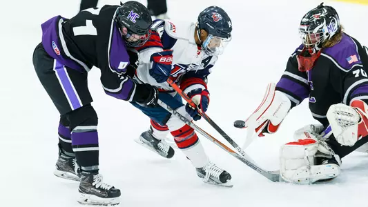 Fogarty also had a third-period hat trick against Montgomery College while Nole, freshman center Randy Plaisance, and senior defenseman Michael Eisaman added two goals and Smiley, freshman center Ethan Dunn, Kettelle, Campbell, freshman forward Luke Bessire, Ross, and Chamberlain added single scores as the Flames held a commanding 70-10 shot advantage.