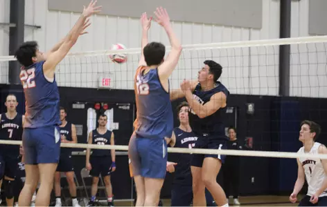 Liberty University's Division I men's volleyball team overcame first-game losses to Virginia Tech in the semifinals and the University of Virginia in the championship match to win both best-of-three matches to claim first place in Saturday's Eastern Collegiate Volleyball Association (ECVA) play date in the LaHaye Multipurpose Center.