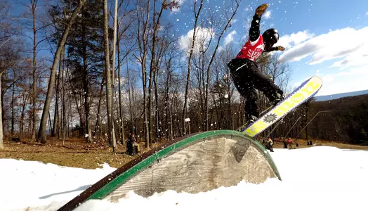 Head Coach Isaac Gibson and members of Liberty University's ski & snowboard team helped to groom and set up the Terrain Park at Bryce Resort in Basye, Va., before competing in the USCSA Rail Jam on Saturday afternoon, sweeping first place in the men's and women's ski and snowboard events.