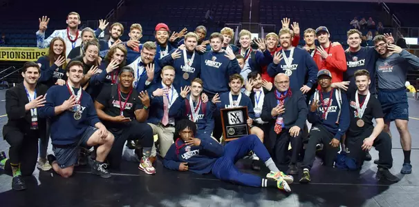 Liberty University’s men’s wrestling team became the first program to win four consecutive NCWA Grand National Tournament Championships, eclipsing Grand Valley State — which won three straight from 2006-08 — Saturday at the Allen Event Center in Allen, Texas. The Flames also tied the Lakers with their fifth total team titles after claiming their first in 2015.