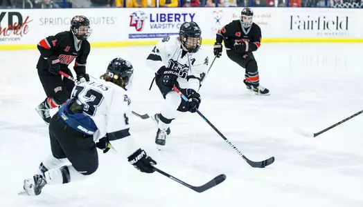 Liberty continued to pressure the UNLV cage over the next 90 seconds with shots by Lauber and Fricks blocked by Wickson (27 saves) before the Rebels struck back and iced the 4-2 victory with a wide-open finish by Flanders in the right crease off a cross-slot assist from Golant with 1:32 to play.