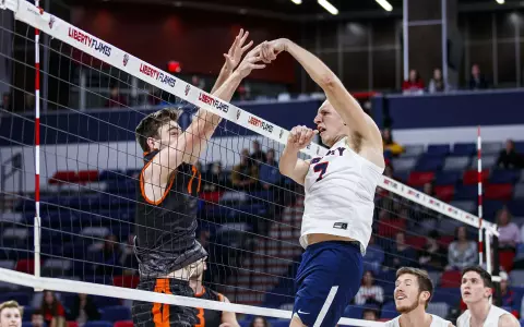Liberty University’s Division I men’s volleyball team, ranked No. 1 in the National Collegiate Volleyball Federation (NCVF) poll, went undefeated in pool play and advanced to the finals of Saturday’s Eastern Collegiate Volleyball Association (ECVA) South Championships before losing to its closest rival, tournament host Virginia Tech, 18-25, 25-18, 15-13.