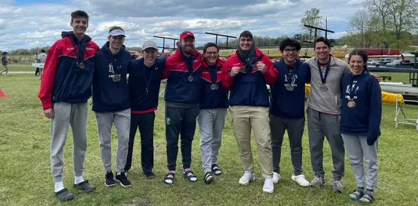 Liberty’s men’s Novice 4 B boat, with a new lineup of rowers that included junior Clayton Allred, senior Morgan O’Connor, freshman Blake Mosshart, and sophomore Carlos Diaz and Bentz as coxswain, opened the day of races by winning a gold medal in its heat in 5:53.82, ahead of UNC (6:04.16) and High Point (6:35.90).