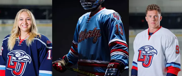 Fitting for an ice hockey program, Liberty University’s ACHA Division I and DII men’s and women’s teams and CHF DIII men’s squad will have some cool new duds to showcase this season, designed by Club Sports Marketing & Social Media Coordinator Caroline Sellers.