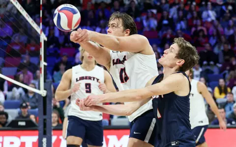 Liberty (0-2) was paced on attack by four kills apiece from graduate outside hitter Cross Edwards, senior middle hitter Tyler Wemple, and freshman opposite hitter Zachary Lamoureux while senior middle hitter John Sauder added three kills and three blocks. Senior setter Chase Keith distributed 11 assists and junior libero Mason Ellenberger had seven digs to go with his 27 service receives.