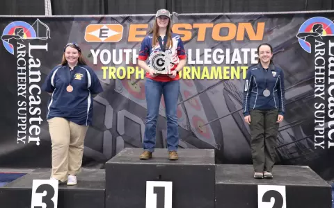 Firing at targets 18 meters away, sophomore Kayla Cassidy won the women's barebow out of 14 competitors with her total of 478 through 20 rounds of three arrows, averaging 7.967 out of a possible 11.0 on each arrow.