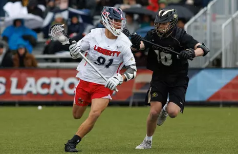 Cooper Branham and graduate middie Cameron Carter finished back-to-back runs through the right side of the box with shots into the top-left corner of the cage to stretch Liberty’s lead to 8-2 with 4:52 left in the first half.