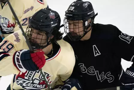 The Flames set the pace early against Utah State and cashed in for the first goal on a redirected shot from the left point through traffic off the stick of graduate defenseman Alex Norwinski, assisted by sophomore forward Josh Sherwood and graduate forward Josh Malin.