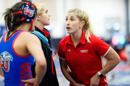 Liberty University’s women’s wrestling team took baby steps and giant leaps throughout the 2022-23 season, Head Coach Charisse (Manley) McIlhenny’s third at the helm. She and men’s wrestling Assistant Coach Josh McIlhenny not only welcomed their first child, Zain, into their family, but the women’s team introduced several newcomers to the sport after pre-season tryouts.