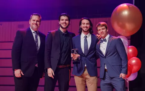 Dr. Kevin Conner, an assistant professor of psychology, received the Club Sports Academic Partnership Award. Haley Greene, a member of the Club Sports student integration team who helped support the synchronized skating team on road trips, was presented the Student Service award while the synchronized skating team as a whole received the Legacy Award for its outrech work to keep alumnae engaged in the program.