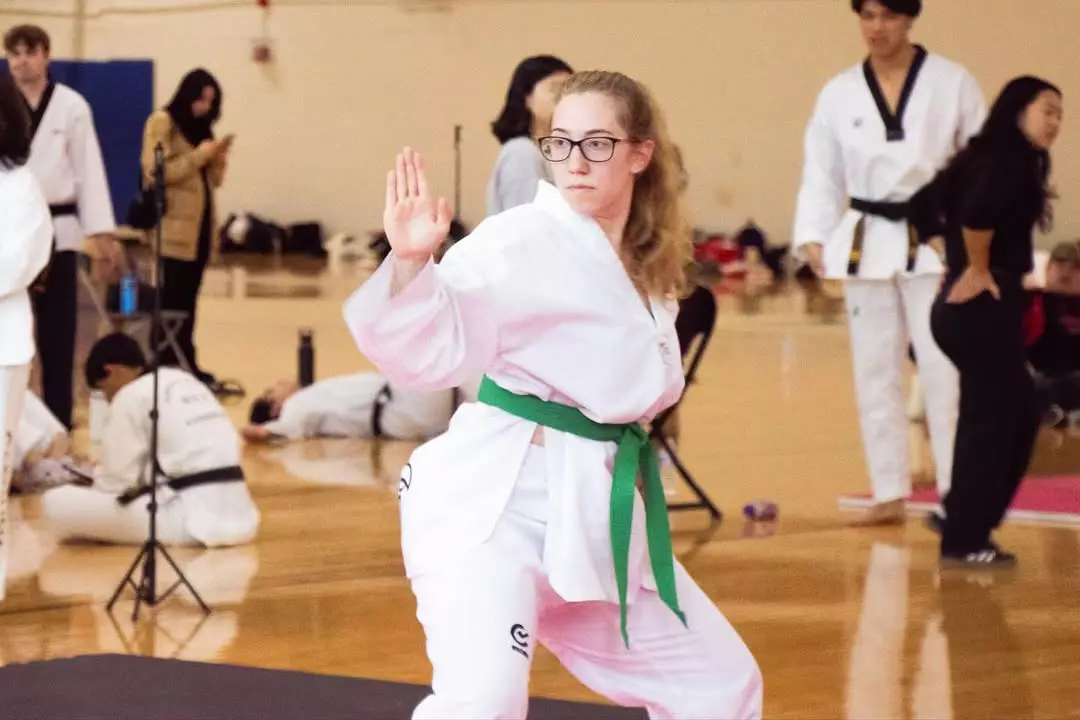 Senior Katrina McMillen, a second-year team member as a yellow belt, was the overall champion in the C division (white through green belts) in both forms and fighting.