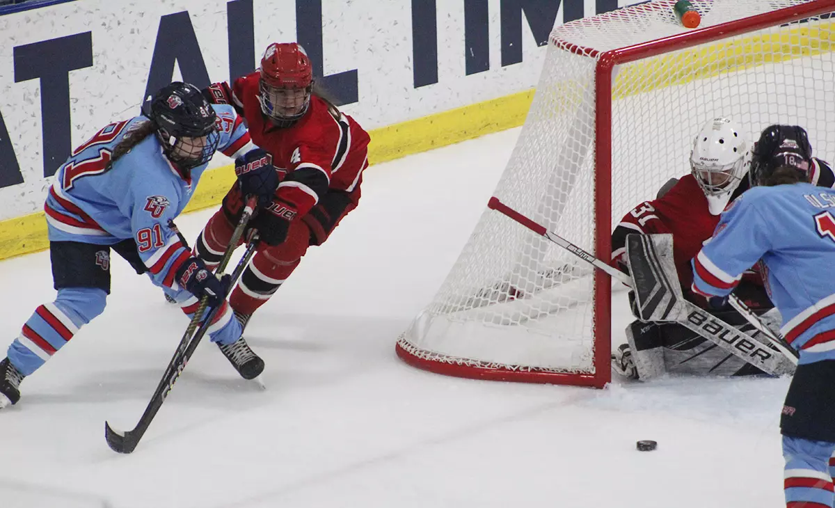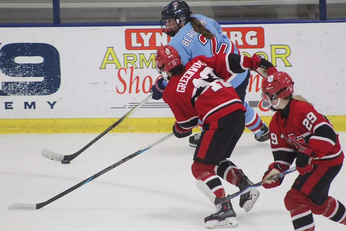 After Sarauer started the scoring just 1:38 after the opening faceoff by finishing the first of Sophia Adamek's three assists, sophomore defenseman Jules LaFaive converted a feed from sophomore forward Brooke Olson exactly a minute later. Zosia Adamek then capped the first-period scoring and started the second stanza with back-to-back goals assisted by graduate defenseman Allison Shaw, the second on a power play.