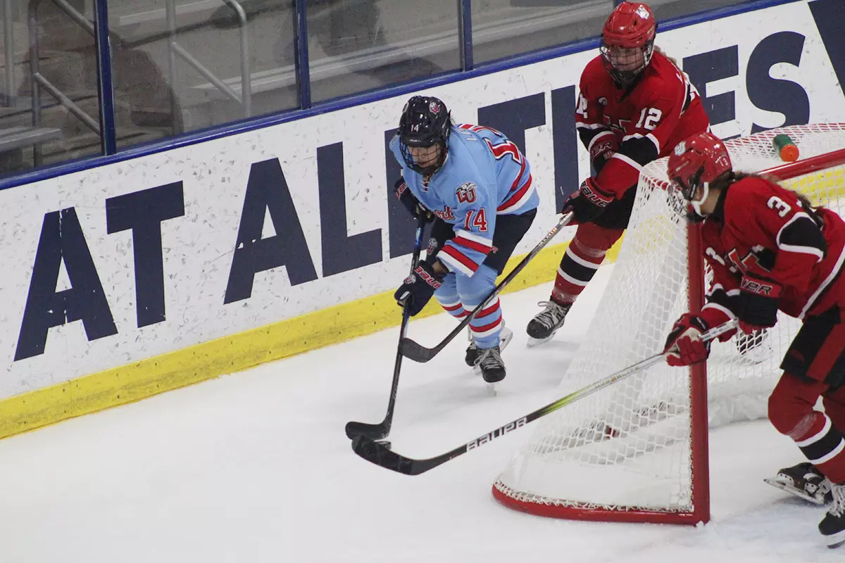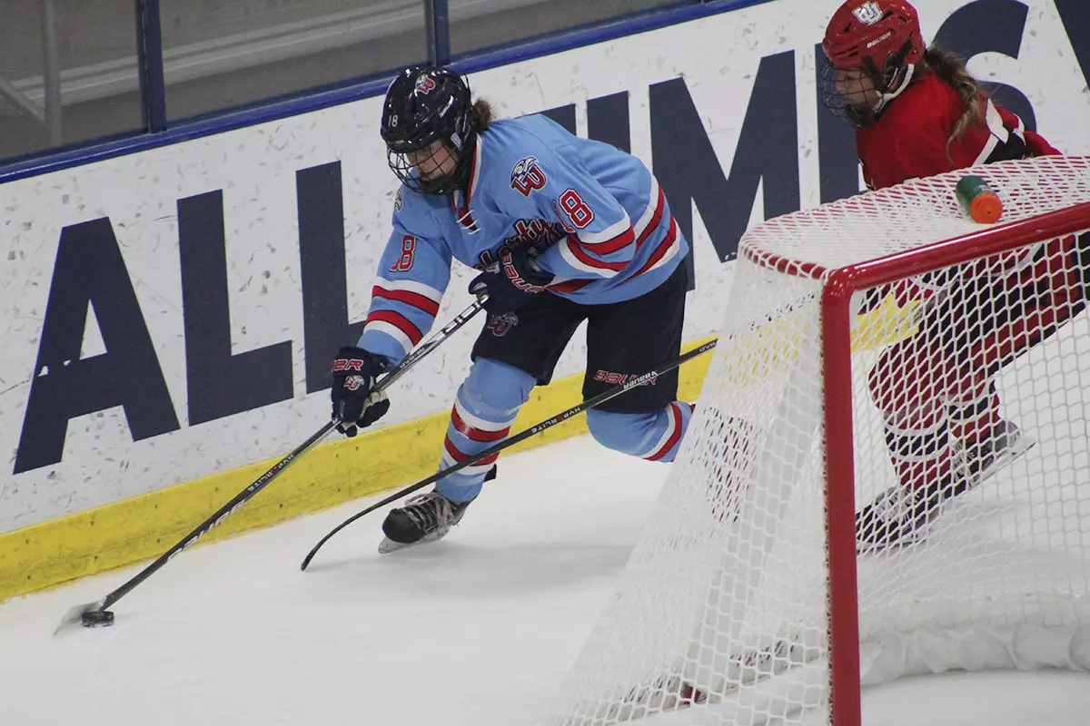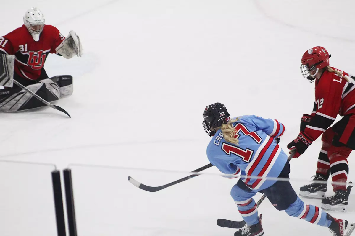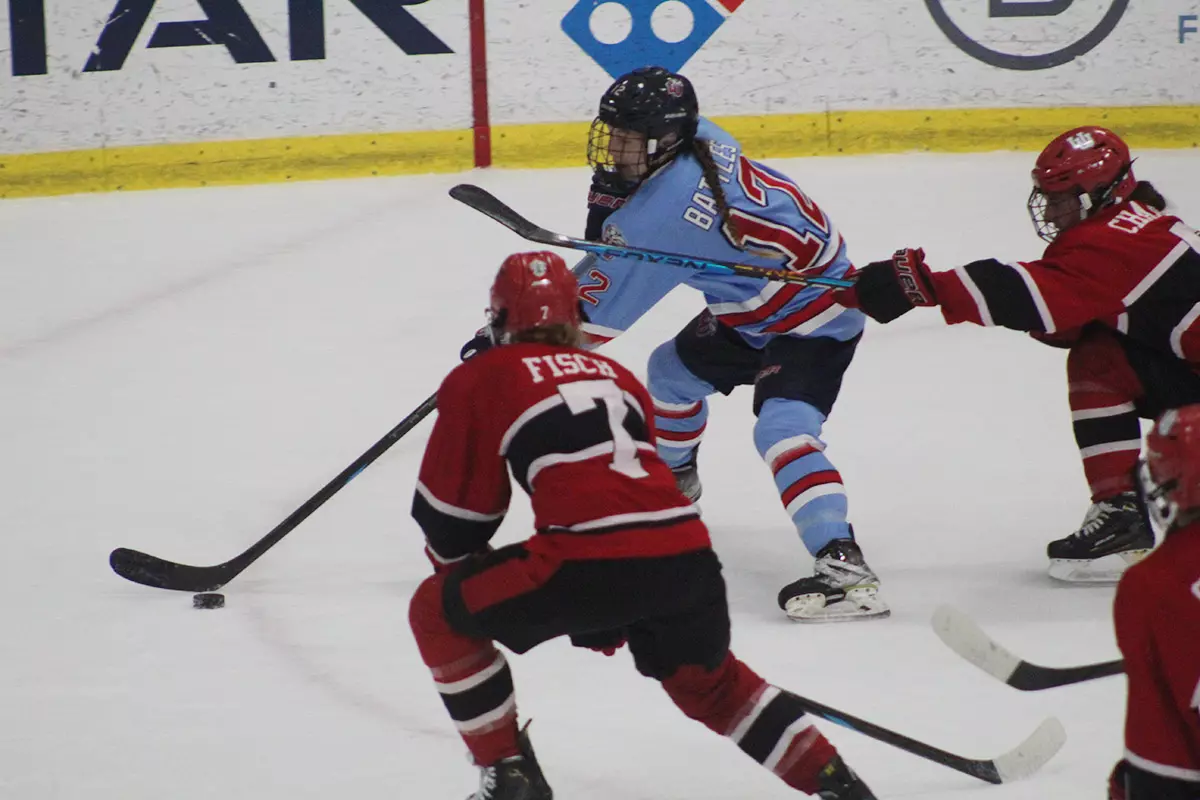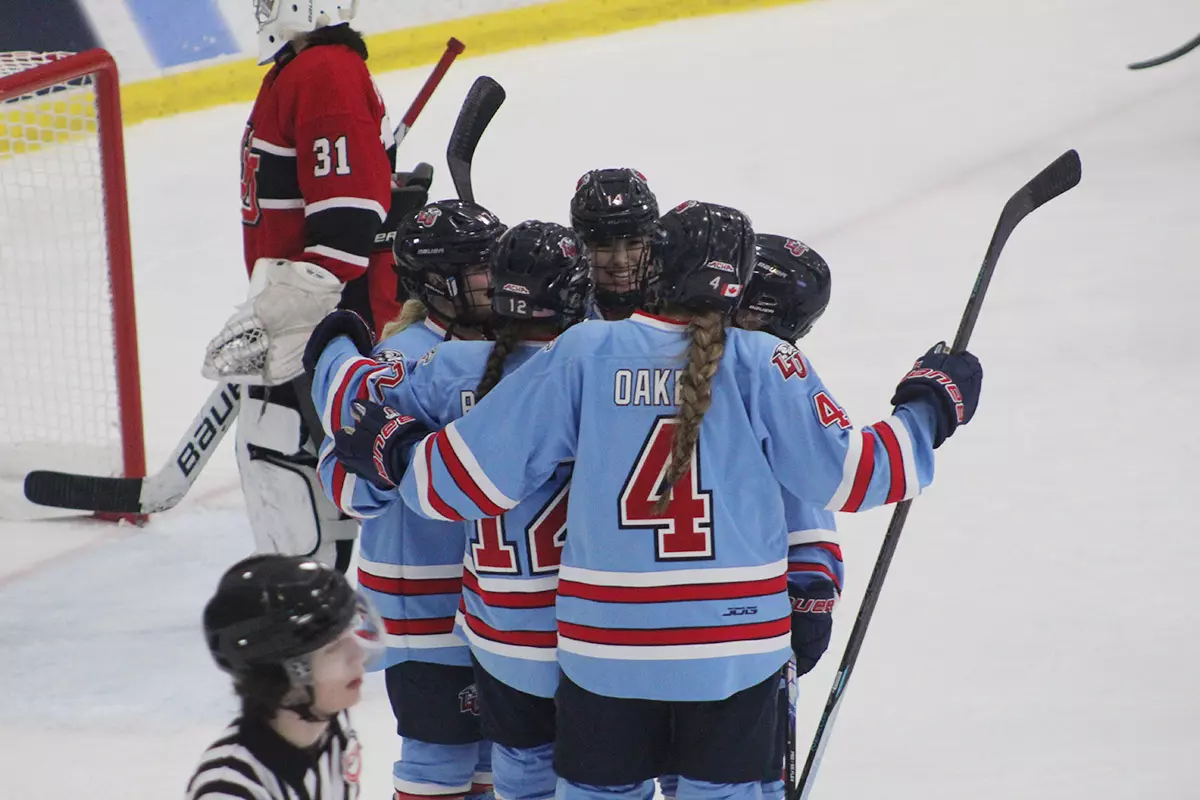 "This was our first ACHA game so we're very happy with the amount of goals and the execution we had, and our discipline on the ice as well," said junior defenseman Sophia Adamek, who netted one goal and distributed three assists. "That was a huge factor. We didn't have any penalties in this game, and we've been harping on that so that was good to see."