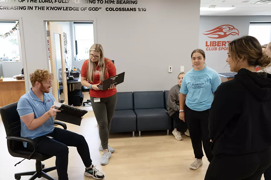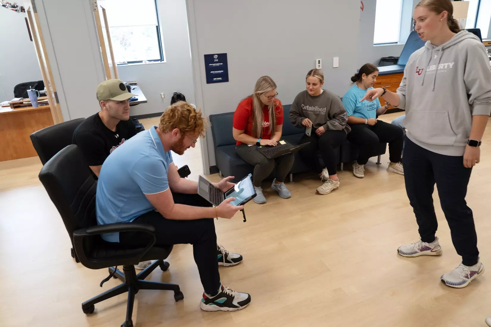 Witt, Campbell, and the other five Club Sports athletic trainers are introducing the app this semester, replacing the Vital Signs Computerized Neurocognitive Assessment Software as the protocol for testing approximately 500 Club Sports student-athletes. Sophia Gustafson ('23, '24), a new associate athletic trainer for Liberty's Intramural Sports, will administer the test to more than 1,500 of that program's expected 4,000 participants.