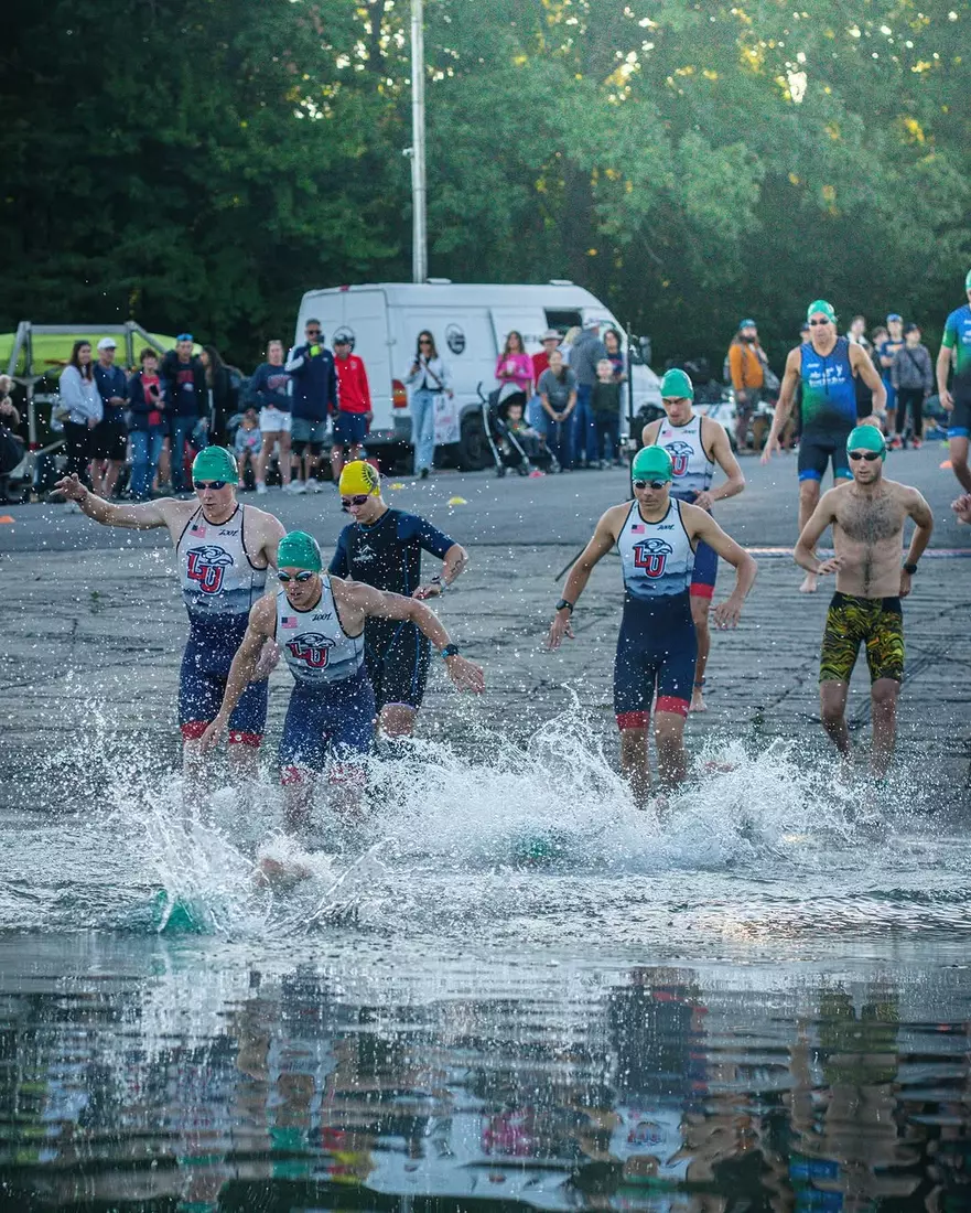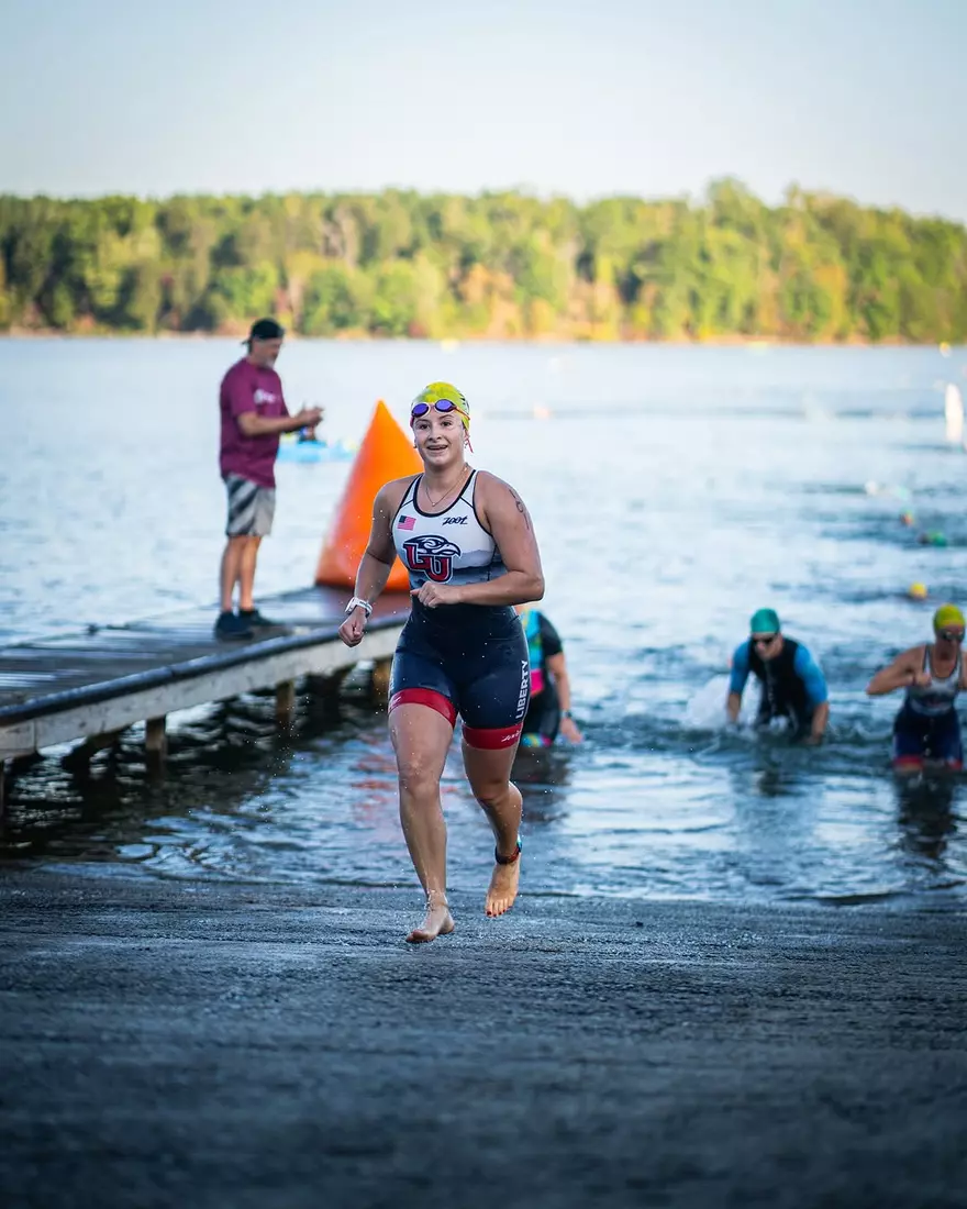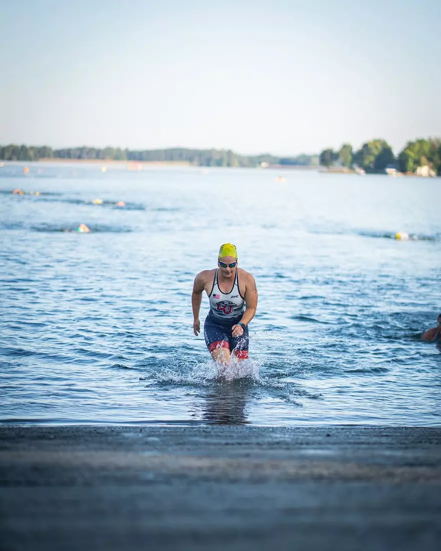 Liberty University's men's and women's triathlon teams opened their seasons by testing themselves in an Olympic distance race — Saturday's Belews Lake Triathlon in Stokesdale, N.C. — and passed with flying colors, with six freshmen completing their first race of that distance and one her first triathlon.